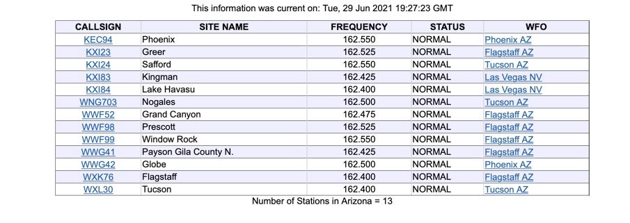 The National Weather Service and the NOAA are just cool. They're one of the only good things about Twitter. This is what they've got listed for Arizona: