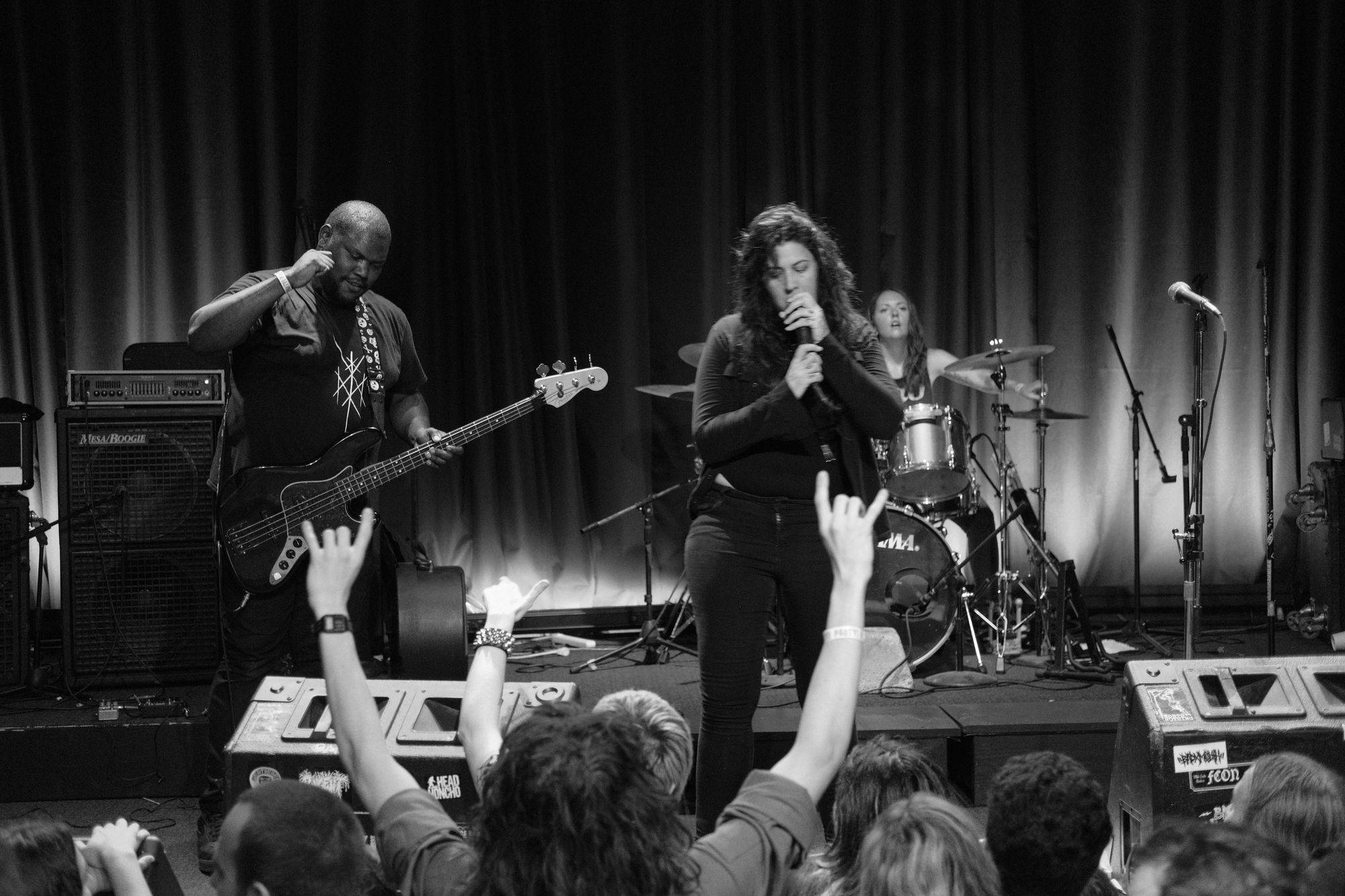 It was black leather jacket, black boots, black fishnet stockings madness at The Charleston. The place was packed. And here comes a grey-haired dude with a camera. I was probably wearing a Filson shirt, and I was definitely an outsider. And you know what? No one gave a shit. I had 3 people come up to me - tattoos, piercings, all black everything - get any good shots? Genuine interest, no suspicion. Hmm, I don't think so. Head nod, supportive head nod. You'll get the next one.